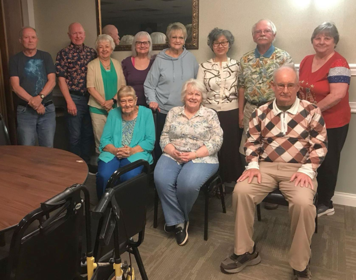 Class dinner at the Lebanon Elks on Apr. 15, 2026. John Trips, Bill Worland, Dana Brown, Norma Kincaid Sanders, Dianna Vanlandingham Ferguson, Grace Cragun, Alan Cragun, Sandy Johnson Isenhour, Linda Delpha, Linda Trent, Than Lenox. Photo taken by Linda Trips.